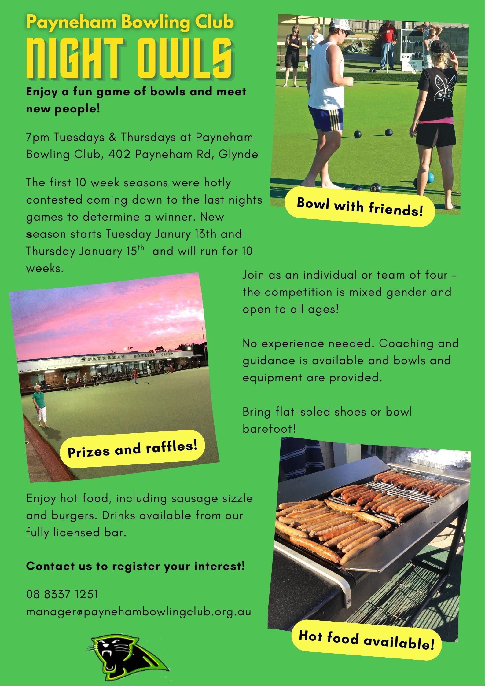 You can register your interest via the contact form below, or you can email us at manager@paynehambowlingclub.org.au or call us on 8337 1251.
